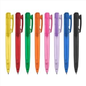 Caneta Plástica Semimetal Esferográfica com Detalhe em Prata
