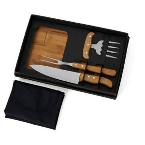 Kit Para Churrasco Em Bambu Com Garfo 4 Dentes – 5 Pçs