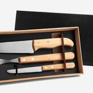 Kit Facas em Bambu/Aço Inox
