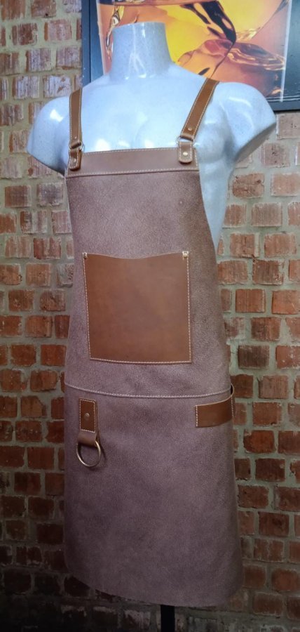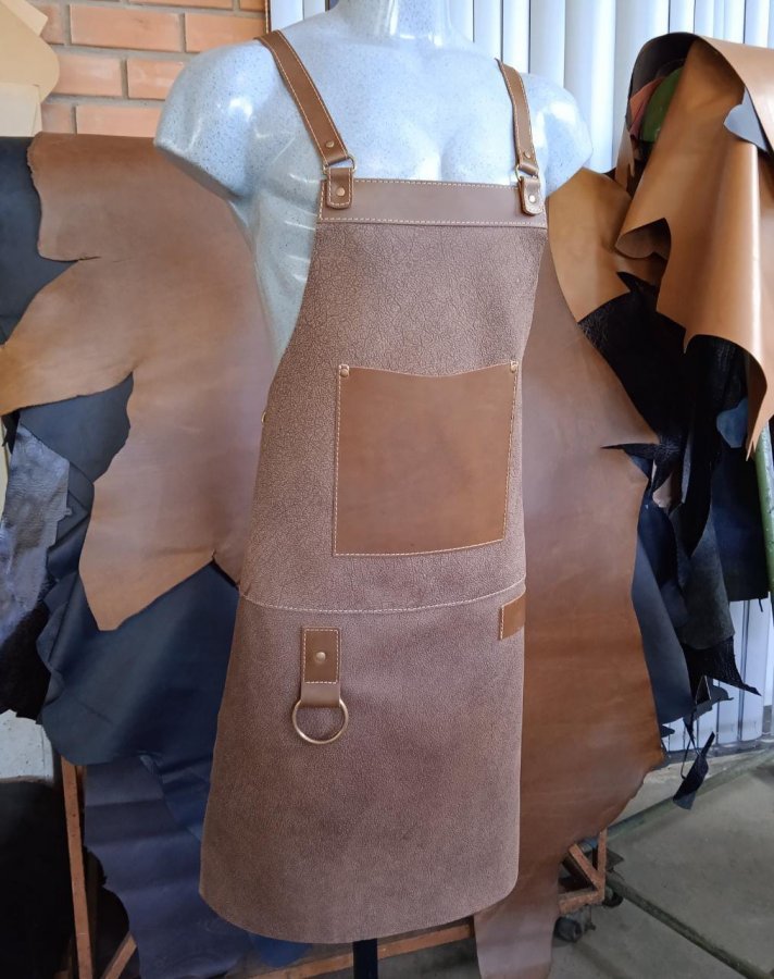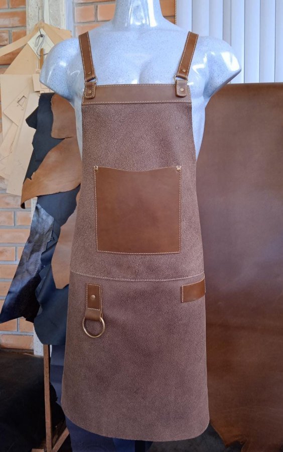 • Descrição: Avental em couro legítimo, com bolso frontal