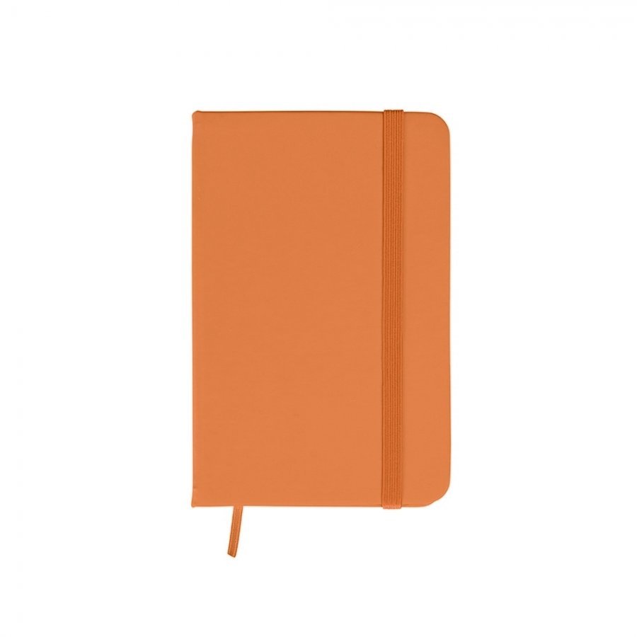 • Descrição: Caderneta tipo moleskine emborrachado com marcador de página em cetim e fita elástica para fechar. Contém aproximadamente 80 folhas amareladas com pauta.