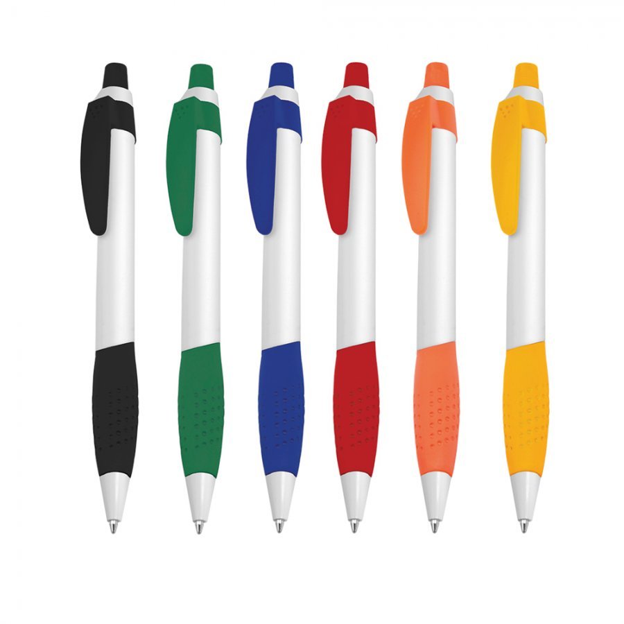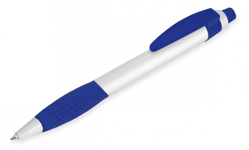 • Descrição: Caneta semimetal esferográfica retrátil escrita em azul, com acessório prata.