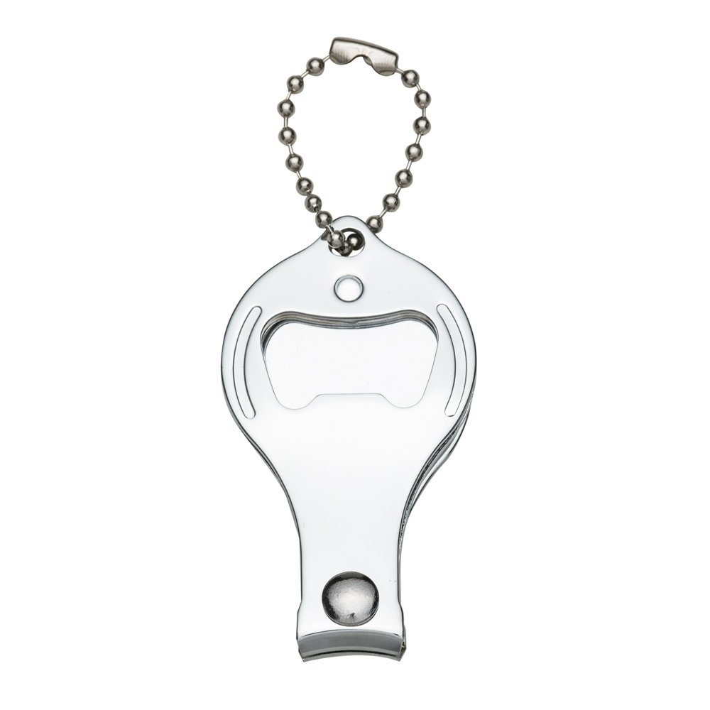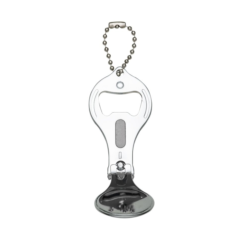 • Descrição: Chaveiro metal 3 em 1: abridor, cortador e lixa. Parte central circular ideal para gravações, detalhe de traços no contorno circular. Lado frontal com detalhes em relevo nas laterais e pequeno círculo acima do abridor. Para utilizar o cortador basta rotacionar a peça circular e levantá-la. Acompanha correntinha.