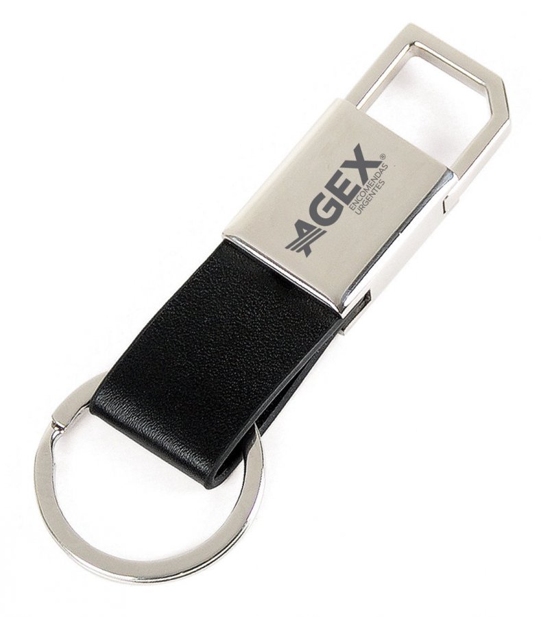 • Descrição: Chaveiro confeccionado em metal cromado brilhante e material sintético preto, é estilo mosquetão, possui argola com Ø 3,2cm e está acomodado em uma embalagem interna aveludada e caixa kraft com tampa fechada em cordão elástico preto para presente.