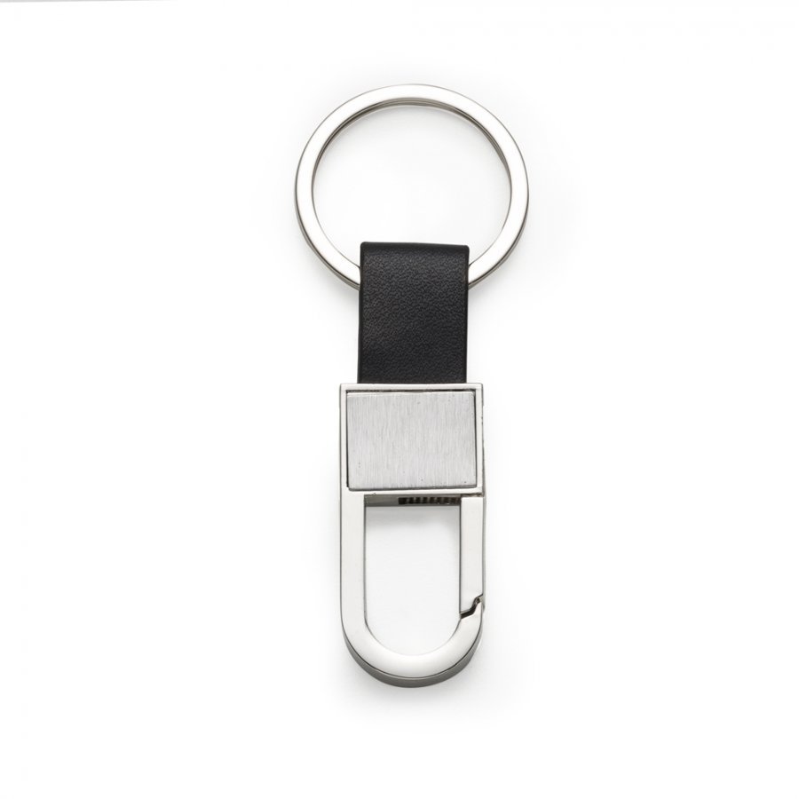 • Descrição: Chaveiro metal mosquetão(sem trava) com alça de couro sintético.