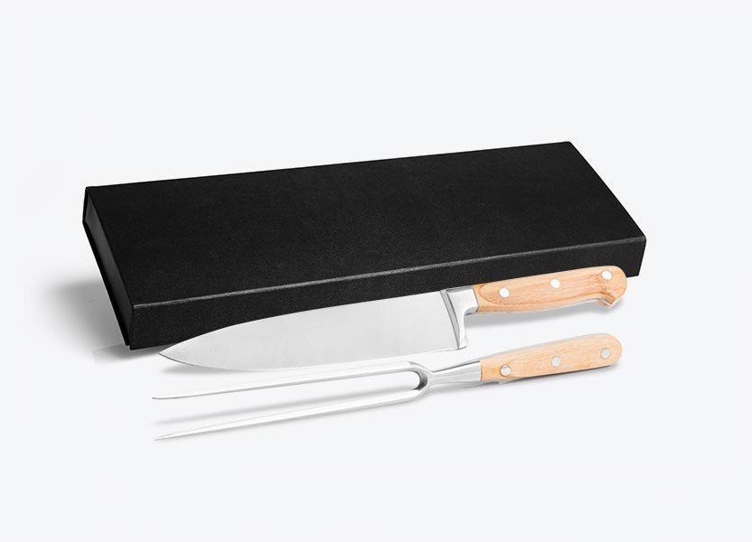 • Uma gravação a Laser na lâmina da faca; Silkscreen 01 cor na caixa.