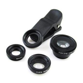 • Descrição: Kit com 3 lentes para celular ou tablet, sendo uma delas Fish eye, uma Macro e uma Wide Angle.