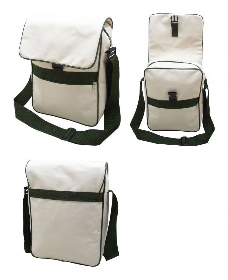 • Com zíper, alça de ombro, regulador e presilha