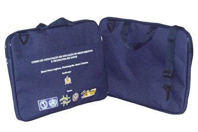 • Descrição: Pasta para evento em poliéster 600 plastificado, alça de mão e ombro, com uma divisória e bolso externo