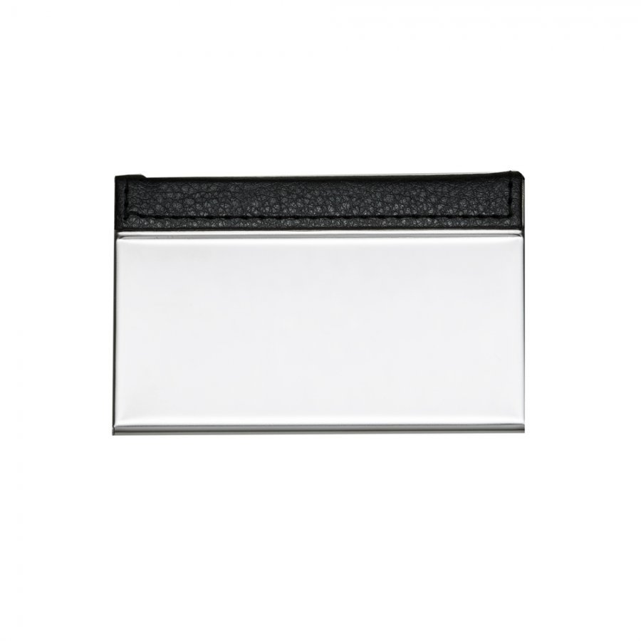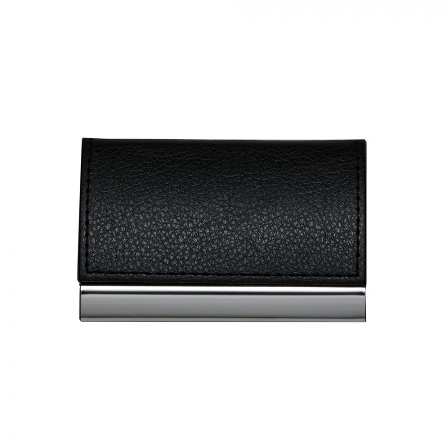 • Descrição: Porta cartão de metal com couro sintético. Couro com textura e costura preta, parte interna revestida com veludo.