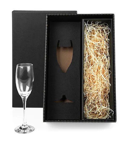 • Descrição: Taça de vidro para Champagne com espaço para mini garrafa em embalagem com tampa e fundo (NÃO ACOMPANHA GARRAFA).